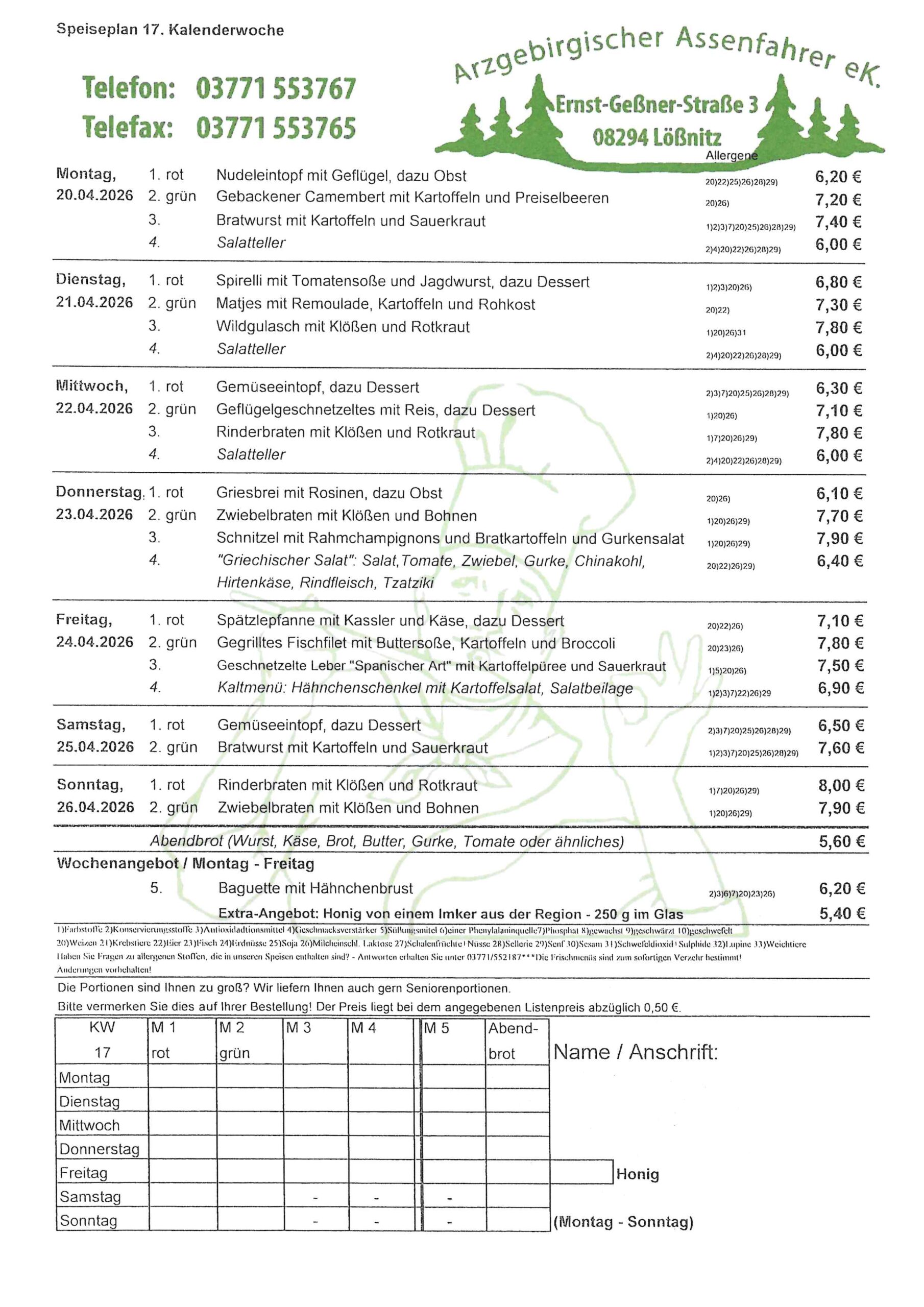 – bitte geben Sie ihre Bestellung bis spätestens 8.00 Uhr des jeweiligen Tages ab –